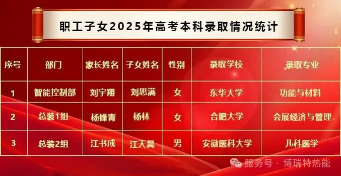 大學(xué)是一個新的起點,也是一個充滿機(jī)遇和挑戰(zhàn)的舞臺。每一份錄取通知書,都是孩子寒窗苦讀的勛章,更是員工平衡家庭與工作、用心培育的成果。公司為員工家庭的這份喜悅深感自豪,也將始終關(guān)注員工成長,與大家共享生活中的每一份美好!再次向以上員工及家人致以最熱烈的祝賀,也祝愿所有員工家庭幸福美滿,萬事順意!